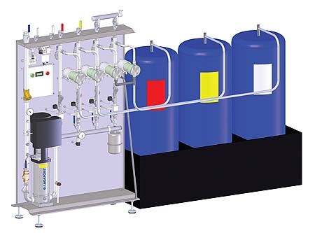 - Main components: pressure booster pump, 1-4 chemical dosing modules and a controller.