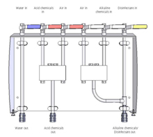 Easy change between water, acid and chemicals/disinfectant |
