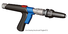Lagafors patent pending Pre-Cleaning Nozzle enables the user to control the water pressure for long or short distance cleaning, that is 0.3–7 metres. By replacing the normal high flow water-hose with the PCN in the pre-cleaning stage, the water consumption is dramatically reduced. The PCN combines high pressure with low volume to ensure water savings. The weight of the Pre-Cleaning Nozzle is only 125 grams.