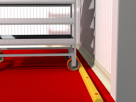 Die Führungen für die Wagen sind ideale Lösung für Wandschutz, Schutz der Schiebetüren, Maschinen und Ausrüstung und Fußgängergeländen innen Betriebsräume.