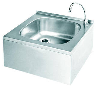 A wall mounted hand-wash basin with sensor or knee push valve activation. These are available in three different sizes.