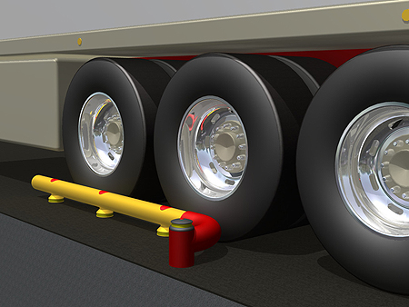 AL120 aligner for vehicles is the ideal way to protect from the moving vehicles either the structure of the sealing portal or the lifting foot-board at the loading-unloading points, or the equipment and machinery placed outside the premises, or pedestrian crossings inside the factory.