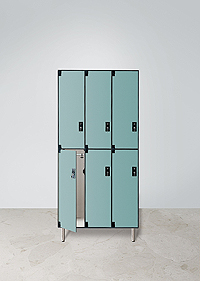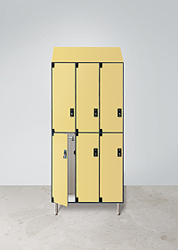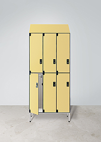 Šestdelni model garderobne omarice (razdelek širine 30 cm) z ravno ali nagnjeno streho in nogami iz nerjavečega jekla, višine 5/10/20 cm.