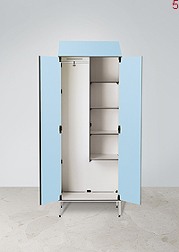 AI506/180 IN Model garderobne omarice z nasprotnimi vrati, posamezni razdelek s policami. Primerno za shranjevanje sredstev za čiščenje, nagnjena streha.