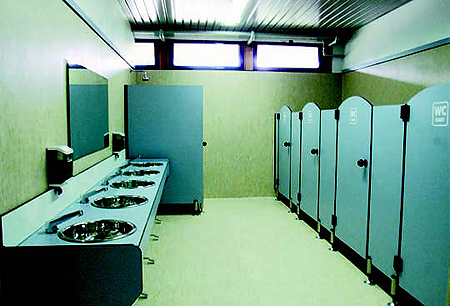 Primer stranišč, umivalnikov in garderobnih kabin, prirejenih posebej za otroke