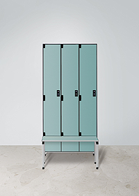Tridelni model garderobne omarice AS506/180P, s klopjo iz visokokvalitetnega aluminija in spoji iz najlona