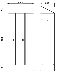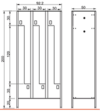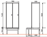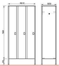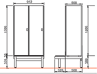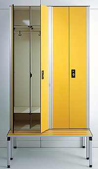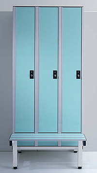 Tridelni model garderobne omarice AS508 s klopjo iz nerjavečega jekla.