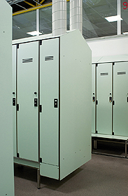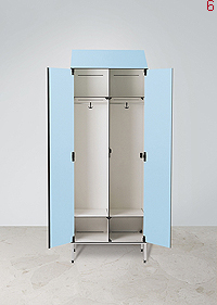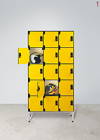 10. AI506 IN Special - Special locker with opposing doors, mobile partition with different heights shelves, drawer, milled base and sloping roof. This locker has been custom designed for the Fire Brigade.